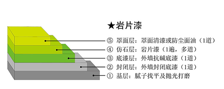 2、無機(jī)巖片有效增強(qiáng)整體涂層強(qiáng)度,耐久性更強(qiáng);